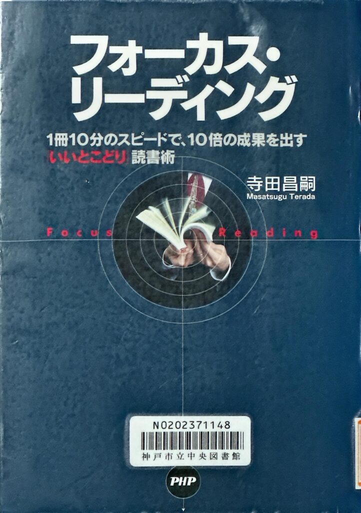 速読術についてはずっと以前に読んだことがあって、その内容を思い起こしながら速読した。目次や見出しから内容を推測すること、前から順に読み始める必要がないことのほか、目の動きをトレーニングして一瞥で行やページの要旨を掴む方法などが紹介されている。現在それらにじっくりと取り組む時間的余裕がないため、今回はサッと返却することにした。ひとつ新たに学んだのは、本を読む前に、TPOを決めておくと良いいうことだ。どれだけの時間で読み切るかという「時間設定」、何のために読むかという「目的意識」、そしてOccasion「状況認識」の3つ。最後の状況認識がなぜ必要なのかはわからないが。