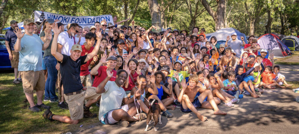 ひのき財団は毎年夏に、週末のキャンプ旅行を後援しています。このキャンプ旅行では、子供たちとその家族が集まり、親睦を深め、語学を学び、文化を共有します。水泳、釣り、スイカ割りに加えて、アメリカと日本の家族がアウトドアのスキルを披露し、今まで食べたことのない最高の「異文化風」キャンプ料理を作ります。 ひのきキャンプは、保護者やお兄さん、お姉さんたちに囲まれた環境で、子どもたちがバイリンガルとバイカルチュラルのスキルを体験できるエキサイティングなイベントです。